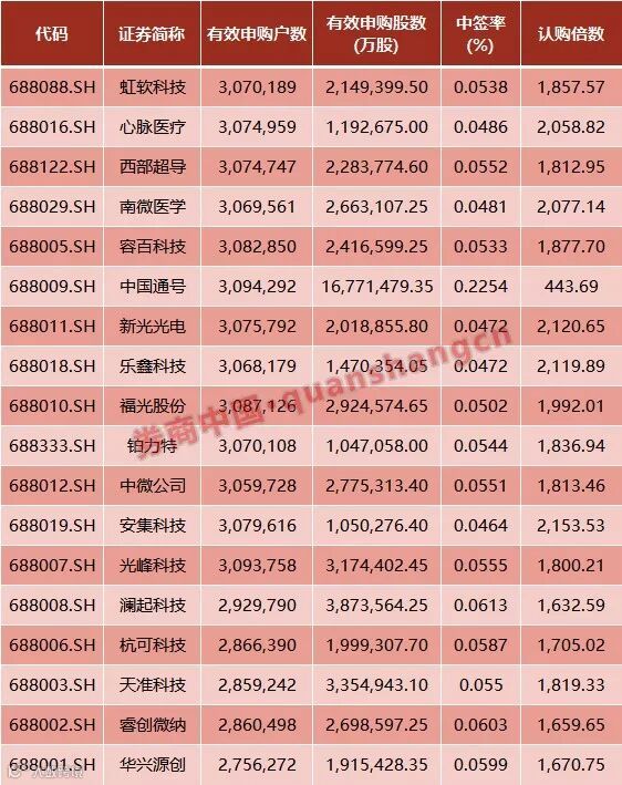 随着首批25家科创板企业发行工作陆续推进,新的中签结果不断出炉。