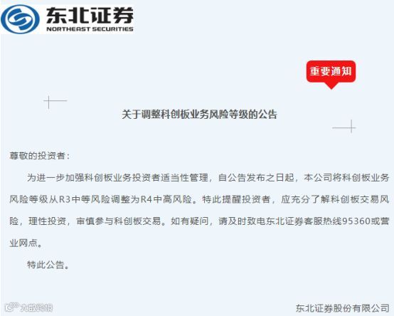 自5月以来,已有中信建投、长江证券、东北证券等多家券商将科创板业务的风险等级由中等风险(R3)调整为中高风险(R4),并提醒投资者,应充分了解科创板交易风险,审慎参与科创板交易。