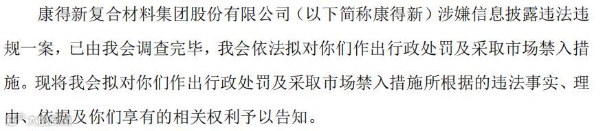 证监会表示,康得新所涉及的信息披露违法行为持续时间长、涉案金额巨大、手段极其恶劣、违法情节特别严重。证监会已经向涉案当事人送达行政处罚及市场禁入事先告知书,拟对康得新及主要责任人员在《证券法》规定的范围内顶格处罚并采取终身证券市场禁入措施。下一步,我们将充分听取当事人的陈述申辩意见,以事实为依据、以法律为准绳,依法进行处罚;对涉嫌犯罪的,严格按照有关规定移送司法机关追究刑事责任。