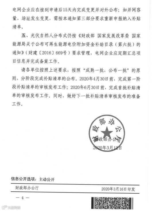 “第八批”光伏补贴终于申报!财政部印发可再生能源补贴项目清单工作通知