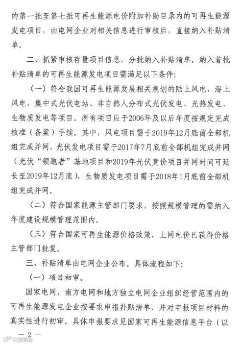 此前由财政部、国家发展改革委、国家能源局发文公布的第一至七批可再生能源电价附加补助目录内的可再生能源发电项目,由电网企业对相关信息进行审核后,直接纳入补贴清单。