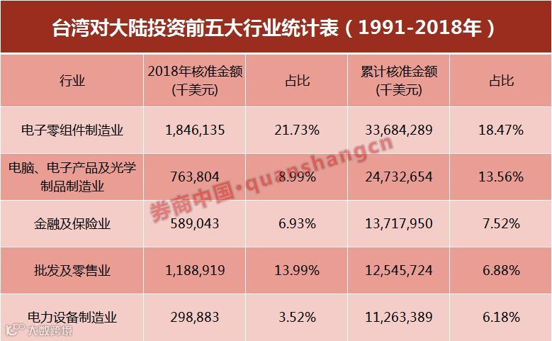 根据台湾证券交易所的统计,截至2018年底,台湾证券交易所共有上市公司928家,其中赴大陆投资的上市公司有736家,占上市公司总数的79.31%。随着大陆经济快速发展,在大陆资本市场上市已经成为企业后续发展的战略选择,甚至有大陆子公司反向收购台湾当地上市母公司,并在大陆整体上市。