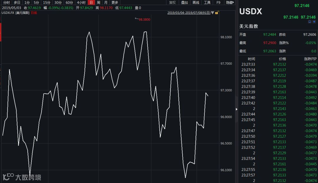 美元指数则走高。