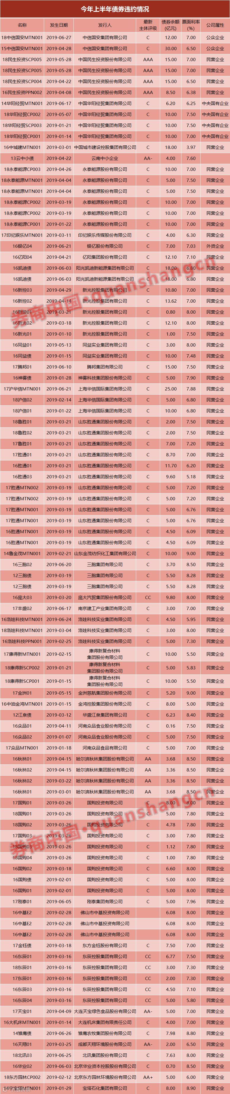 6月17日,上清所公布,中国华阳经贸集团有限公司(简称“华阳经贸”)2014年度第一期中期票据(简称:14华阳经贸MTN001)发生实质性违约,发行规模为8亿元,行权后存续金额6.2亿元。6月16日是这期票据的兑付本息日,但未按时将相关资金足额划拨至托管机构。