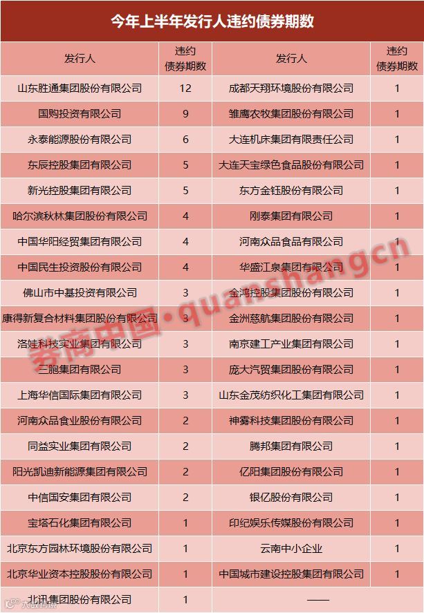 这12期违约债券分别为16胜通MTN001,17胜通MTN001、002,16胜通01、03,17胜通01,17鲁胜01,18鲁胜01、02,违约发生时间在今年3月下旬。