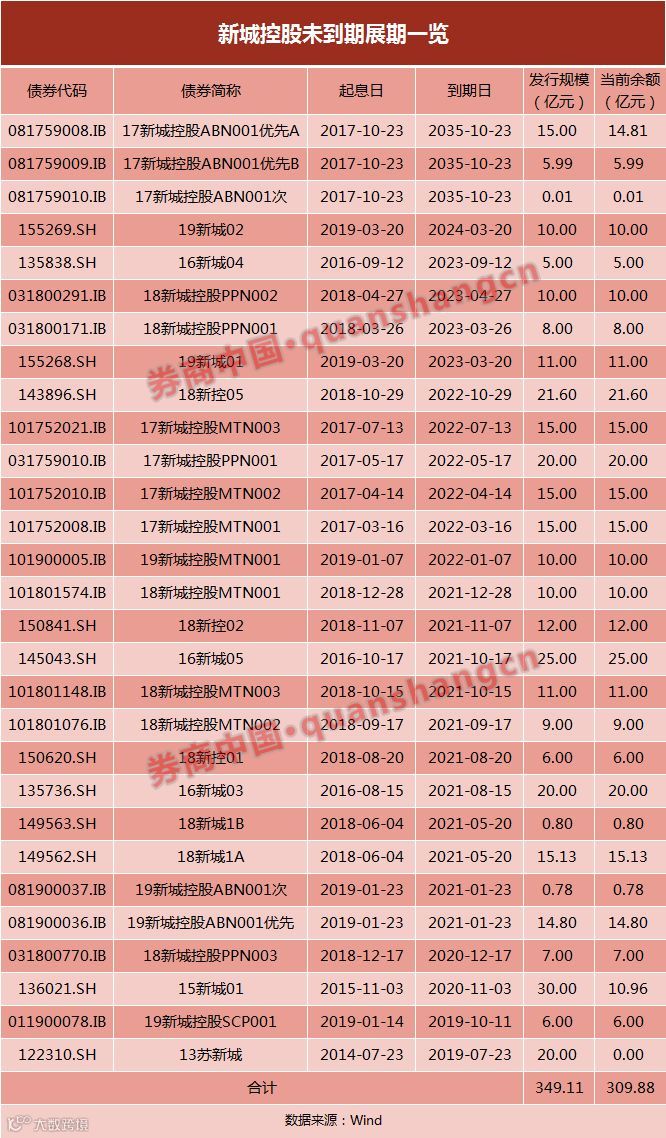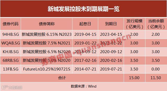 Wind数据显示,新城发展控股目前债券存量规模高达11.5亿元,存量只数共5只,规模均在5亿以下。