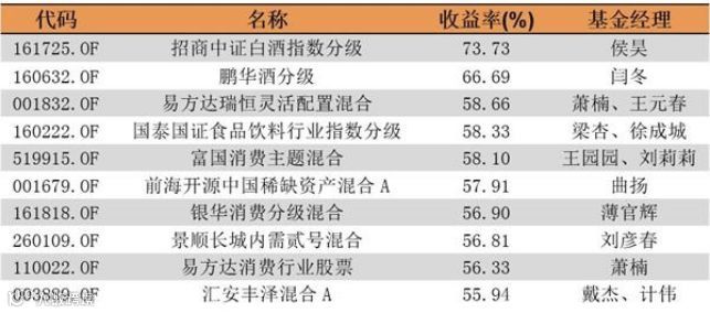 上半年的大赢家基金无一例外重仓持有消费及白酒。以易方达瑞恒为例,该基金一季报披露的前十大重仓股分别为:贵州茅台、五粮液、泸州老窖、顺鑫农业、格力电器、上海机场、美的集团、爱尔眼科、古井贡酒、苏泊尔。其中前三大重仓股合计持仓占比超过30%。