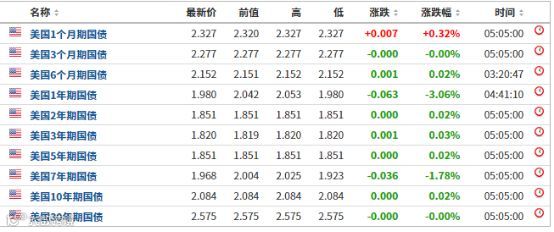 数据显示, 6月7日纽约尾盘,美国10年期基准国债收益率跌3.65个基点,报2.084%,非农数据公布后一度跳水触及日低至2.0534%,为2017年9月8日以来最低,较上周五纽约尾盘累跌4.37个基点,为连续第五周下跌。30年期美债收益率跌4.66个基点,报2.575%;较上周五纽约尾盘累涨0.35个基点。五年期美债收益率跌2.98个基点,报1.851%,较上周五纽约尾盘累涨5.80个基点。而美国3个月国债收益率依然高于美国10年期国债收益率,最新报2.277%,显示“倒挂”依然在延续。