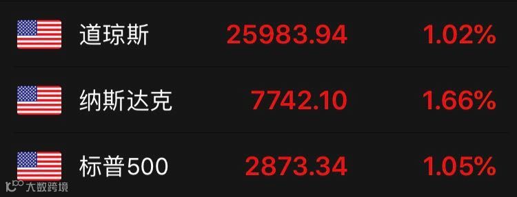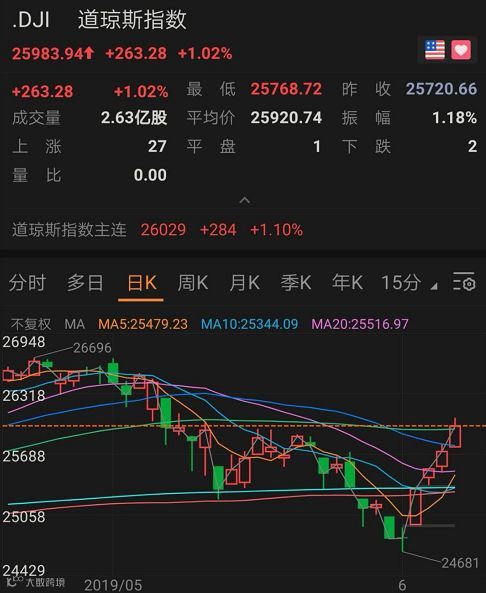 截至美国时间6月7日收盘,道琼斯工业平均指数收涨263.28点,涨幅1.02%,报25983.94点,连续第五日收涨。标普500指数收涨1.05%,报2873.34点,连续第四日收涨。标普和道指创去年11月以来最大单周涨幅。纳斯达克综合指数收涨涨幅1.66%,也是连续第四日收涨。