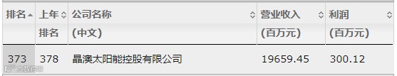 ❒ 7月10日,财富中文网发布了2018年《财富》中国500强排行榜,晶澳太阳能控股有限公司以196.59亿元人民币年营业收入位列第373位,较上年排名前进5位,这也是晶澳太阳能连续四年荣登《财富》中国500强排行榜。