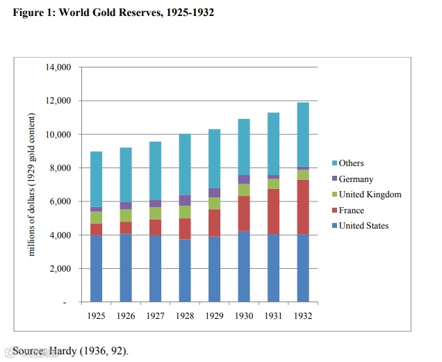 在1933年之前,美国财政部发行黄金证书。这样,任何一个美国人可以在这个时点之前,在银行把他们的黄金证书换成实物黄金。1926年6月法国重新规定法郎含金量为0.05895克,与原金法郎相比贬值90%。
