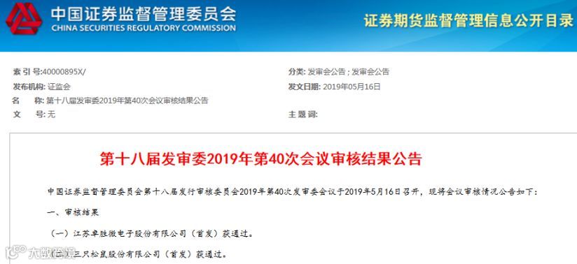 5月16日,证监会网站信息显示,中海油能源发展股份有限公司、江苏卓胜微电子股份有限公司、三只松鼠股份有限公司3家公司全部顺利过会,其保荐券商均为中金公司。