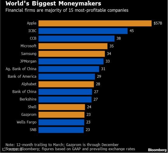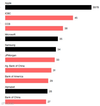 “在过去的一年中,最好的赚钱方式是当一家中国的银行,或者是苹果。”彭博在其报道中称。