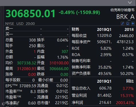 此前几个季度伯克希尔之所以利润指标表现不佳,是因为美国会计规则要求伯克希尔录入未实现的股票投资损益,巴菲特在最近几年的年度致股东信中都在强调公司总利润将面临“狂野而反复无常的波动”,并认为这些波动毫无意义。今年一季度,伯克希尔的股票投资赚得155亿美元,对金融衍生品的投资赚得6.08亿美元。