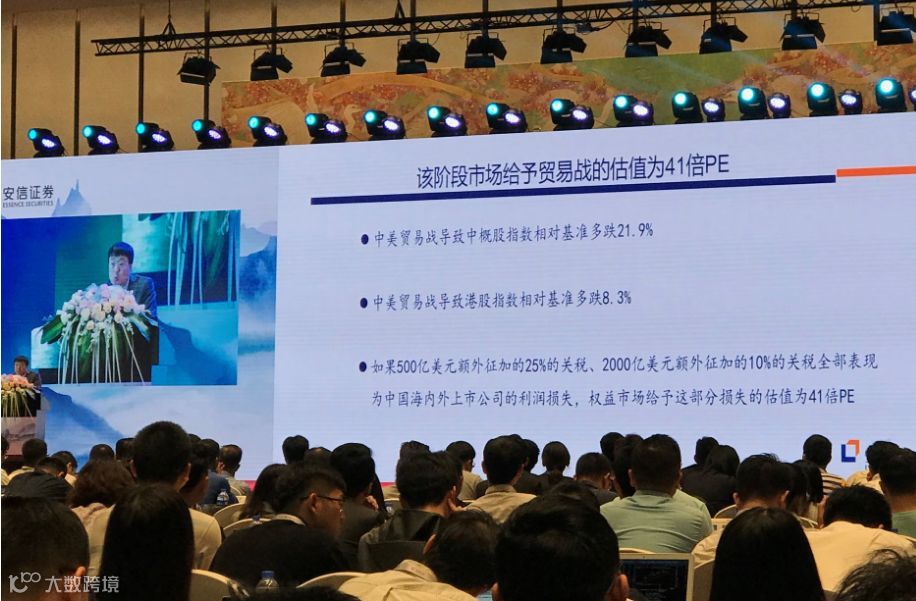 而在今年5月1号之前,市场普遍认为双方签订和解协议是大概率事件,中概股指数和H股的估值水平都开始修复。该阶段市场给予贸易战的估值为41倍PE,中概股指数多跌了21.9%,港股指数多跌了8.3%。