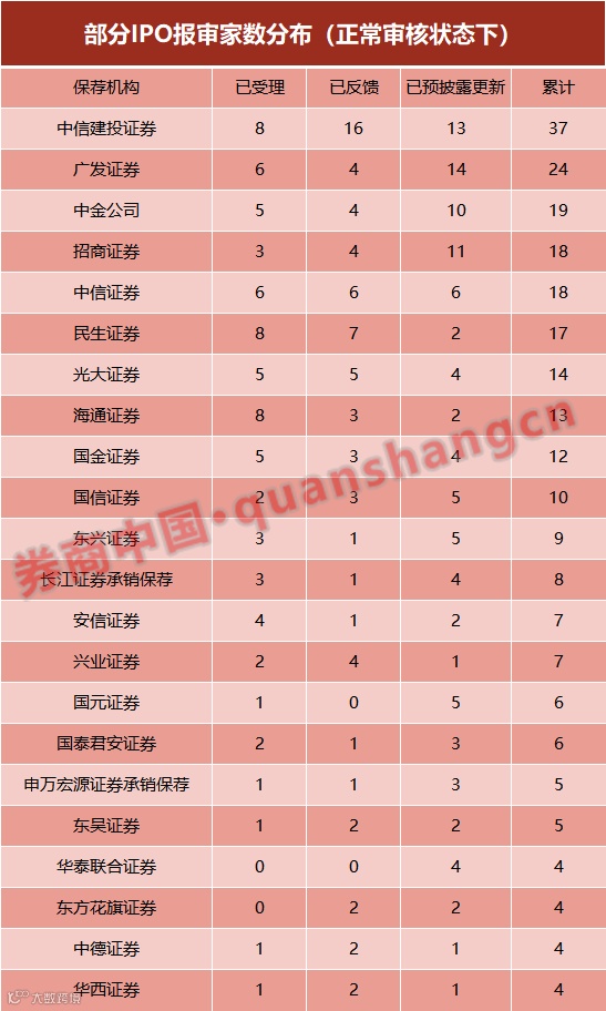 值得注意的是,今年不少投行注意力还在于科创板项目申报上,目前证监会在审项目也只能部分说明券商的传统IPO项目储备情况。
