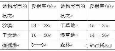 太阳能光伏组件反射率与常见地表物体反射率对比