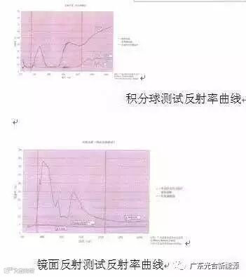 国内已建成投运的上海虹桥机场(京沪高铁虹桥枢纽站)太阳能光伏发电项目,上海空间电源研究所(具有国家实验室认可资质)依据《空间用单晶硅太阳能电池总规范》(GJB1431-92)和《卫星热控涂层试验方法》(GJB2502-95),对多晶硅太阳能组件进行了镜面反射和漫反射检测,同时对蓝色彩钢板、蓝色幕墙玻璃进行了同种检测作为对比,结果如下: