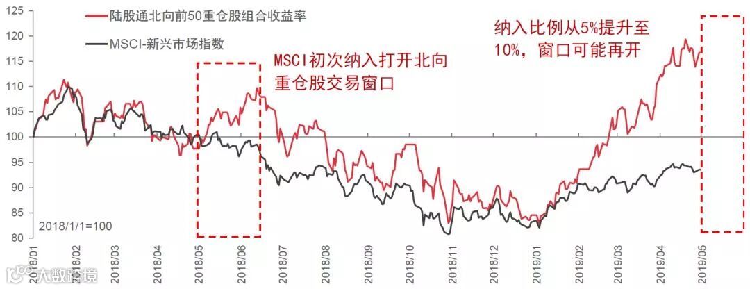 资料来源:DataStream,Wind,组合收益率计算权重按照2019年1月2日北向资金持仓市值计算;陆股通前50大北向资金重仓股占其总持仓市值70%;中信证券研究部