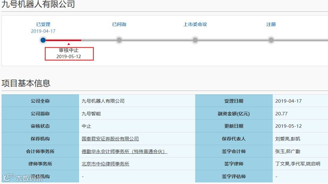 5月12日晚间,上交所科创板股票发行上市审核系统显示,九号机器人有限公司(“九号智能”)的上市审核状态变为“审核中止”,这是科创板首家审核中止的企业。