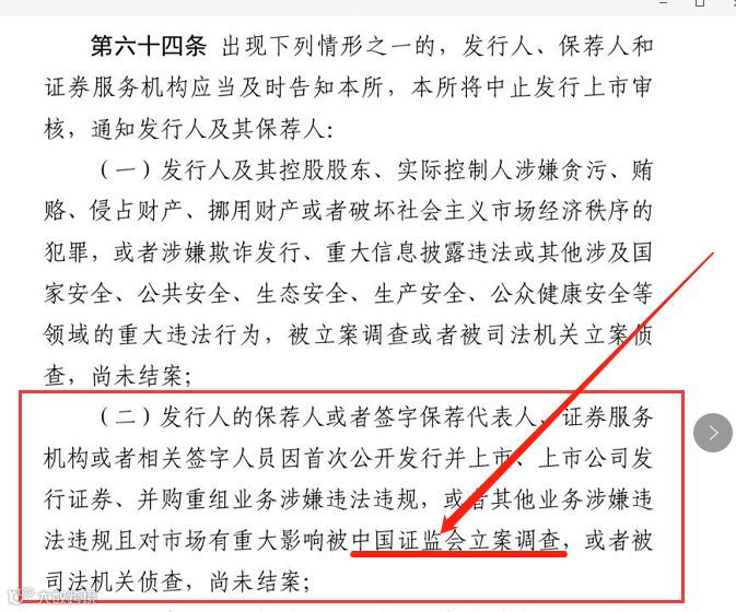 按照科创板规则,发行人的保荐人或者签字保荐代表人、证券服务机构或者相关签字人员因首次公开发行并上市、上市公司发行证券、并购重组业务涉嫌违法违规,或者其他业务涉嫌违法违规且对市场有重大影响被证监会立案调查,或者被司法机关侦查尚未结案的会被中止审核。