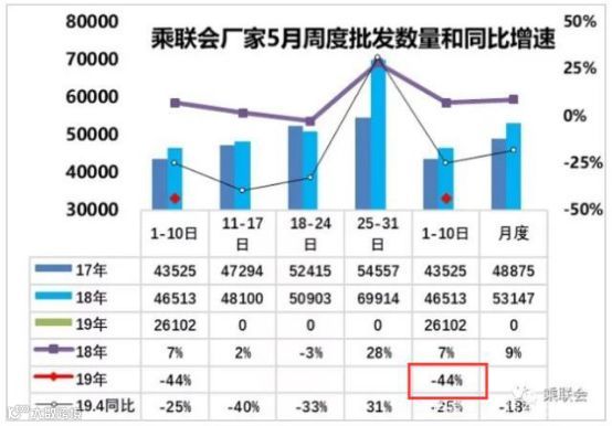 中国新车销量下跌已成为常态,跌跌不休的国内车市,不知不觉已进一步扩大跌幅。乘联会更新数据显示,5月第一周期(1-10日)乘用车厂家零售销量同比下跌24%,厂家批发销量同比大跌44%,下滑幅度很大。