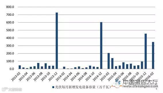 我国光伏每月新增发电设备容量