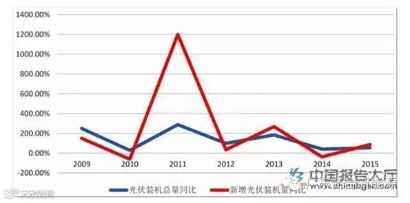 从同比增速来看, 近年来我国光伏累计装机量总体来说维持了较为高速的增长, 但增速呈现阶梯状回落的格局,累计同比从 2011 年的 288%逐渐回落至 2015 年的 54.21%。从新增装机量来看,呈现出较大的起伏,2014 年的新增装机同比更是回落至-37.21%。自 2015 年下半年以来, 我国光伏行业在国家光伏电价补贴将于 2016 年 6 月开始下调的影响, 在抢装效应下市场景气度出现了超预期回升。 从我国每月新增光伏发电设备容量统计数据来看,光伏装机的年底抢装效应十分显著,但自 2015 年 4 月份以来光伏新增装机量持续高于同期,整体光伏电站的抢装潮对整个光伏产业链都带来了直接的拉动效应。