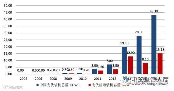 中国光伏发电新增装机容量与累计装机容量