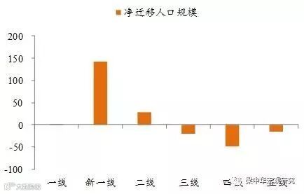 从城市等级来看,人口主要向新一线城市集中,而四五线城市中,有七成城市面临人口净流出!我们对已经公布数据的169个城市进行统计,新一线城市人口流入规模非常明显,已有数据的11个新一线城市中,人口净流入总规模达150万人。而一线城市人口流入不明显,主要是北京流出太多,与新一线城市有较大差距。三四五线城市人口继续净流出,特别是四五线城市中,有七成面临人口净流出的压力。