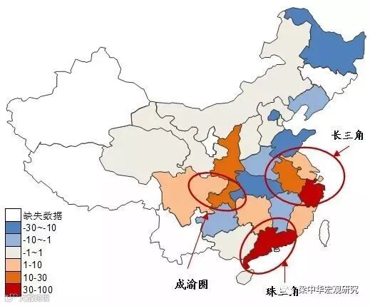 近两年区域经济一体化的政策在加快推出,大都市化、城市群的发展将成为存量经济时代城镇化的新特征。我们比较了京津冀、长三角、珠三角和成渝圈等四大城市群的人口流动情况,发现呈现出明显的“三强一弱”的新格局。