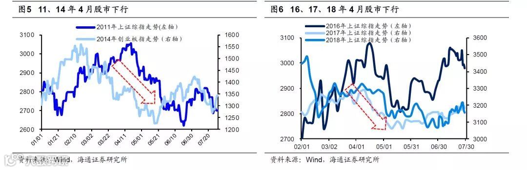 回顾2011年至今,A股往往在4月选择方向,2011、14、16、17、18年4月股市转向下跌,2012年4月股市短期上涨后5月转向下跌,2013、15年4月股市进一步上涨。具体看基本面或政策面变差时,4月后市场转向下跌。