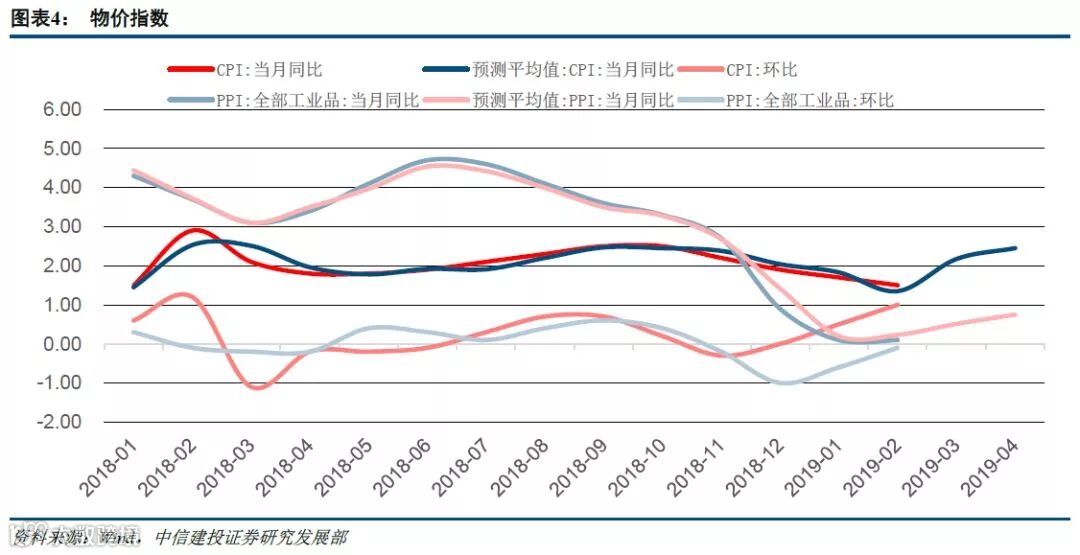 2月CPI同比上涨1.5%,涨幅比上月回落0.2个百分点。CPI环比上涨1.0%,涨幅比上月扩大0.5个百分点。PPI同比上涨0.1%,涨幅与上月持平。PPI环比下降0.1%,降幅收窄0.5个百分点。进入3月以来,非洲猪瘟疫情的影响严重程度超预期,猪价在3月收获快速上涨,有望进一步扩大对CPI环比的拉动作用,同时减弱对CPI同比的拖累。CPI同比短期内有望触底回升。而随着全球经济景气下滑,PPI同比仍可能在低位徘徊。根据费雪方程式MV=PT可知,价格水平总体也会回升。我们预期2019年2月可能是全年的低点,2%的温和通胀牵引盈利主线,投资活动会逐步的回升。