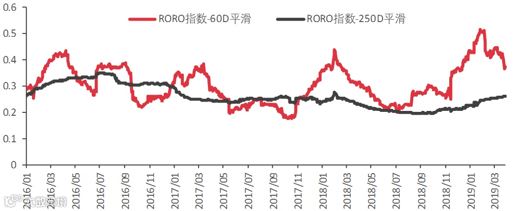 ❸海外扰动上行期,压制全球风险偏好。美国国债10年和3月的期限利率倒挂后,市场对美国经济衰退担忧上升,土耳其等金融脆弱的经济体再次出现市场动荡,而市场对中美谈判达成协议已有比较充分的预期。衡量全球资金风险偏好的RORO指数2月以来已从高位下行。