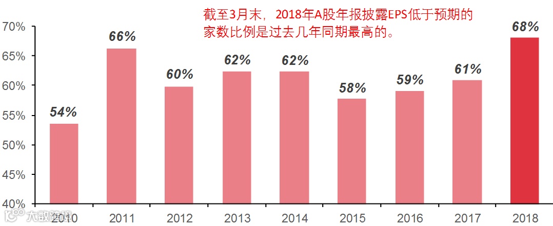 ❶基本面预期还有下调压力。宏观经济和微观盈利数据密集披露,基本面增速下行的压力会最终确认。工业和国有企业的利润增速开年继续下行,而A股盈利增速至少在2019Q2~Q3才能见底。今年以来,A股18/19年净利润规模一致预期已下修4.0%/3.9%,截至3月披露的18年年报中,低于预期占比68%,是2010年来的最高值。4月基本面预期还有下调空间,对市场造成的压力需要时间消化。