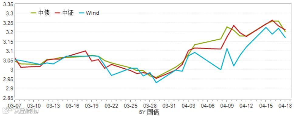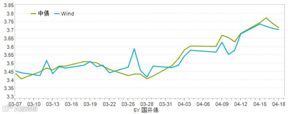 从同样5年期国债收益率曲线和5年期国开债收益率曲线看,从3月底地方债发行完毕之后,4月份以来收益率基本呈现出一路上扬的态势。
