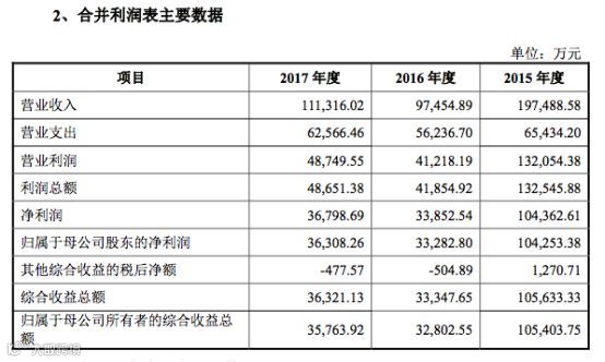 最近几年,随着证券市场逐渐低迷,红塔证券净利润同比出现下滑。2015-2017年红塔证券实现营业收入分别为19.75亿元、9.75亿元和11.13亿元,归属于母公司的净利润分别为10.43亿元、3.33亿元和3.63亿元。