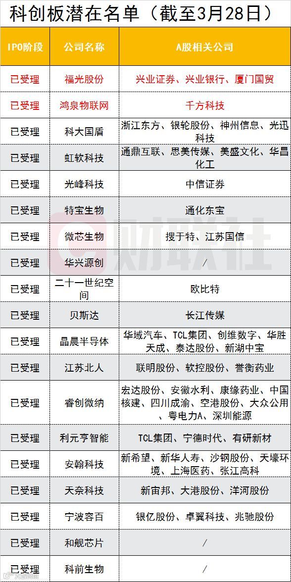 3月28日,上交所披露受理杭州鸿泉物联网技术股份有限公司、福建福光股份有限公司两家公司科创板上市申请。截至目前,上交所已受理19家公司科创板上市申请。