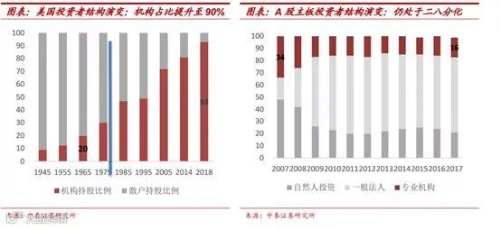 记得有一种说法:美国股市从散户时代到机构投资者时代,大约花了70年时间,即从20世纪初到70年代中期以后机构投资者主导市场。与此相比,A股市场确实还是非常年轻的市场,散户的交易量要占全市场的80%左右。