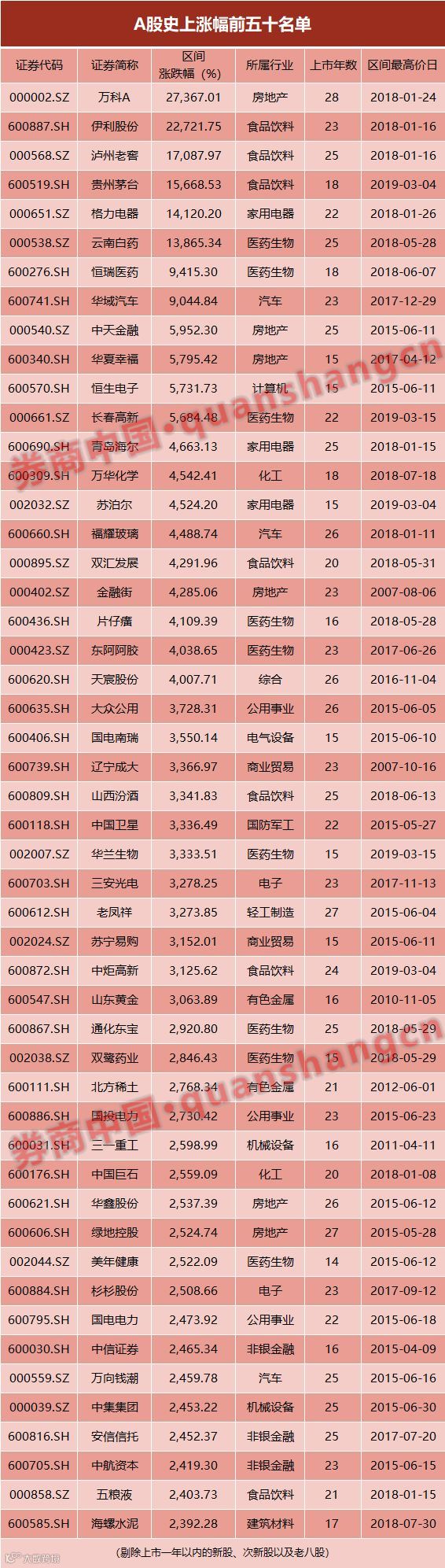 那么,我们来看看看A股史上真正的牛股都是哪些?