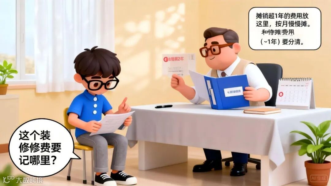 账务处理:发生时借记 “长期待摊费用”,摊销时借记 “管理费用 / 销售费用”,贷记 “长期待摊费用”,摊销期限按受益期或合同期限。