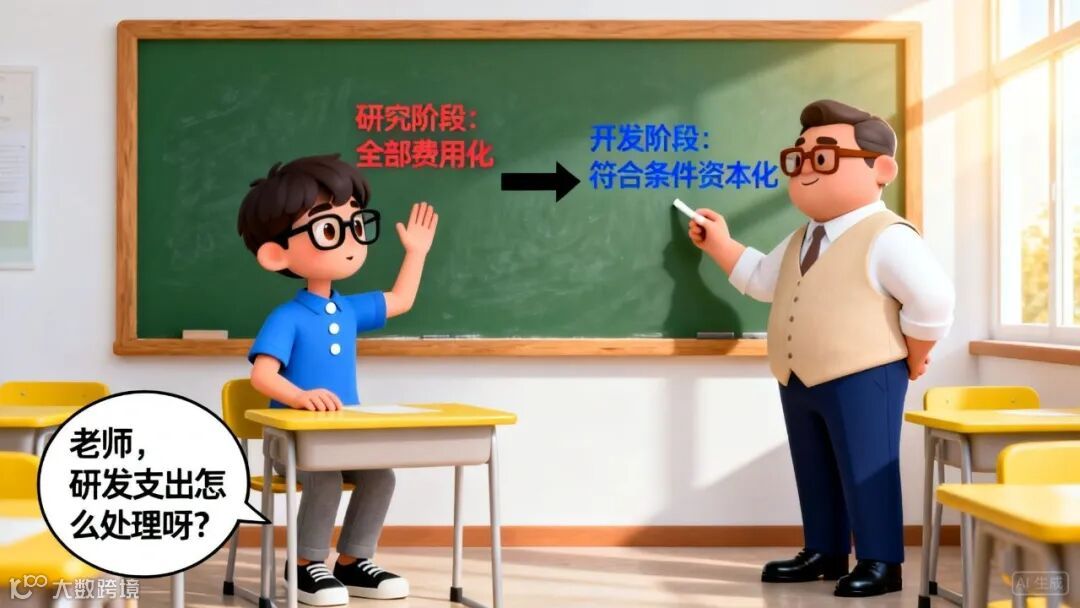 自行研发区分:研究阶段(探索性,费用化)vs 开发阶段(具备可行性,资本化),无法区分的全部费用化。