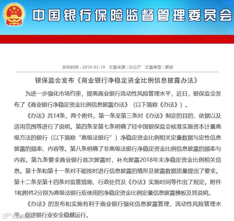 也就是说,银行其实对净稳定资金比例早已熟悉,因此,此次《办法》要求银行强化对净稳定资金比例的信息披露,对银行来说难度并不太大。