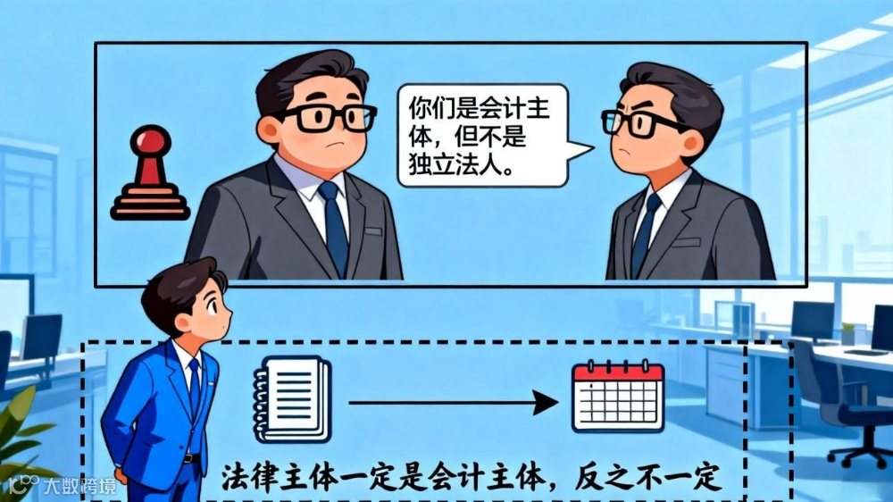 会计主体 vs 法律主体:法律主体一定是会计主体,但会计主体不一定是法律主体(如企业分公司可作为会计主体,非法律主体)。
