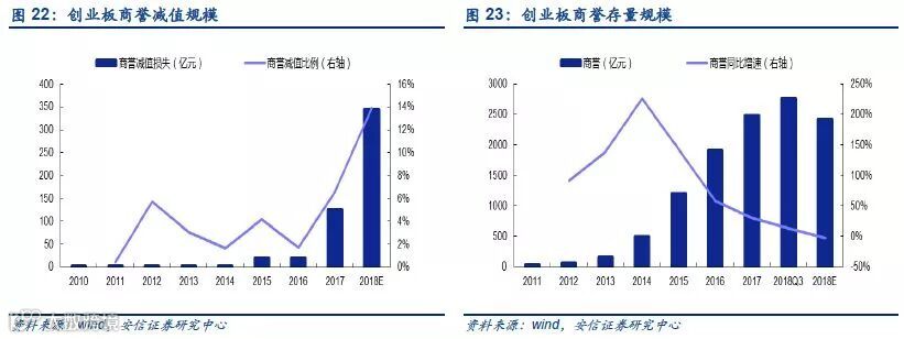值得注意的是Q1不需要考虑商誉减值风险。2018年Q4创业板业绩出现大幅负增长的核心原因主要在于商誉减值并未较2017年收敛,反而环比大幅上升。据不完全统计,2018年创业板商誉减值已经超过260亿元,占比全年业绩接近45%。(需要提醒的是由于预告中存在未披露商誉减值的具体金额,因此该数据仅供参考。)但是,一般而言上市公司会选择在年底进行商誉减值,少数在中报进行,因此Q1不需要考虑商誉减值风险。同时,随着创业板2015年并购高峰带来的三年业绩承诺期过去,商誉减值风险在2017和2018年得到集中释放,我们相信2019年创业板商誉减值风险将环比大幅下滑。