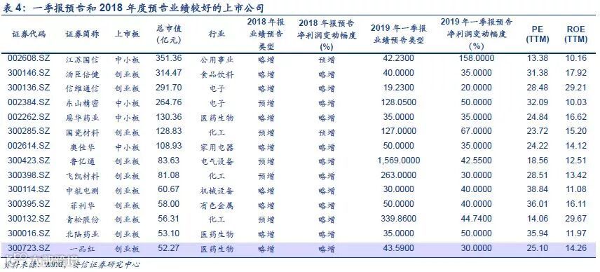 同时,我们根据目前已经披露的A股2018年年报预告业绩及2019年一季报预告业绩,选取了一批基本面较好的上市公司,试图为投资者辨别出后续的投资机会。