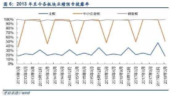 鉴于历史无法完全复制,同时自上而下的分析存在偏差,我们无法精确描述出Q1A股业绩增长情况,以下结论仅供参考。需要提醒的是从实际披露情况来看,主板业绩预告披露率一直低于50%,披露率较低,故往往对其一季报预告业绩不做讨论。同时,历史上中小板一季报预告披露率在30%至50%之间,主要是因为深交所规定并未强制中小板上市公司披露一季报预告。此外,从过去几年来看,创业板业绩预告披露率在95%至100%之间,基本完全披露。