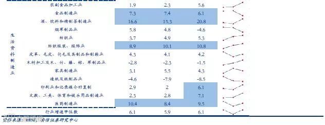 根据2019年1-2月PPI和工业增加值,我们建议关注下游必需消费品领域,例如农副食品、食品制造等细分。一般认为,工业增加值同比增速反映量的变动趋势,PPI同比增速则反映价格的变动趋势,我们希望通过结合各行业间的量价关系来探究行业景气的变动趋势。由于数据本身的宏观性,我们仍然认为该方法从自上而下的角度来看对于行业营收的全局判断是大致准确的。基于统计局的行业划分标准,我们将最新公布的2019年1-2月各行业的工业增加值与PPI结合起来,通过趋势判断,对各行业的营收进行大致的推测,可以发现:从价格的角度来看,我们注意到上游产业价格经历大幅下滑后小有回升,大部分上游产业工业增加值增速小幅提升,整体营收好于预期。同时,中游产业整体价格处于低位,细分行业工业增加值增速分化明显,多数行业整体营收预期持续下降。此外,下游产业分化较大,必需消费品行业能够有较为确定的营收增长。