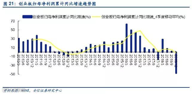 创业板单季度增速或已经在2018Q4探底。从2018年年度业绩预告来看,可比口径下创业板2018年预告业绩增速同比负增长47.06%,较2017年(-16.50%)进一步明显下滑,Q4单季度同比增速超过-300%,创下有史以来创业板最差单季度业绩。因此,我们推测创业板单季度增速或已经在2018Q4探底。