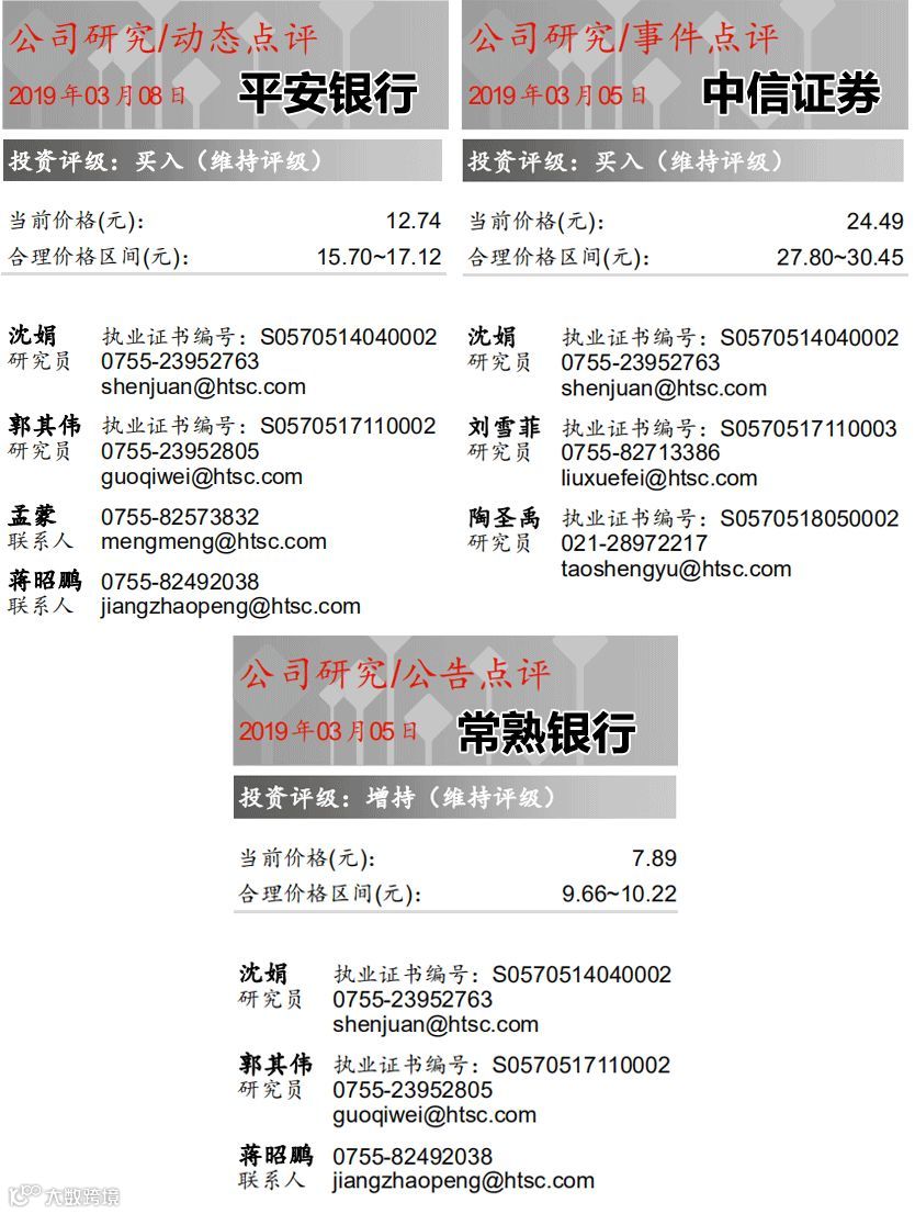 对平安银行、中信证券、光大银行发布“买入”评级,其中,对平安银行发布了三份买入评级报告,也对中信证券发布两份买入评级报告;